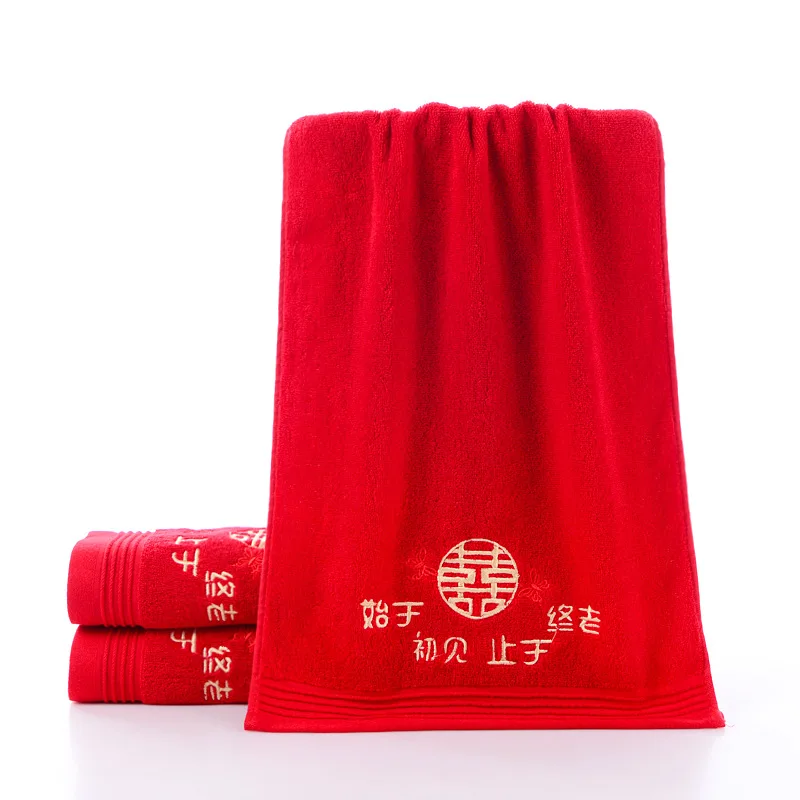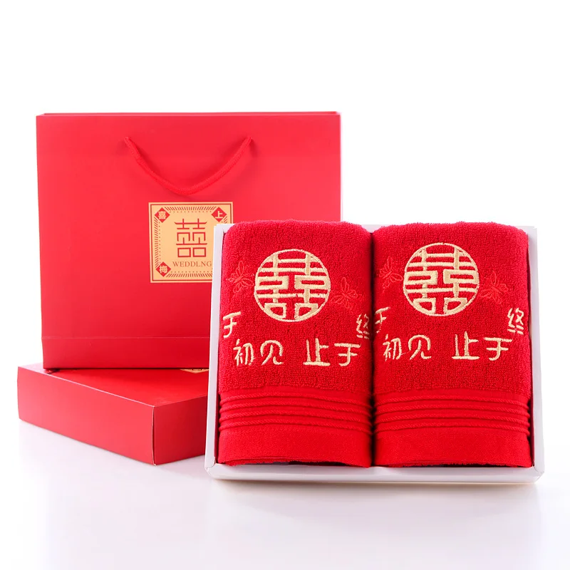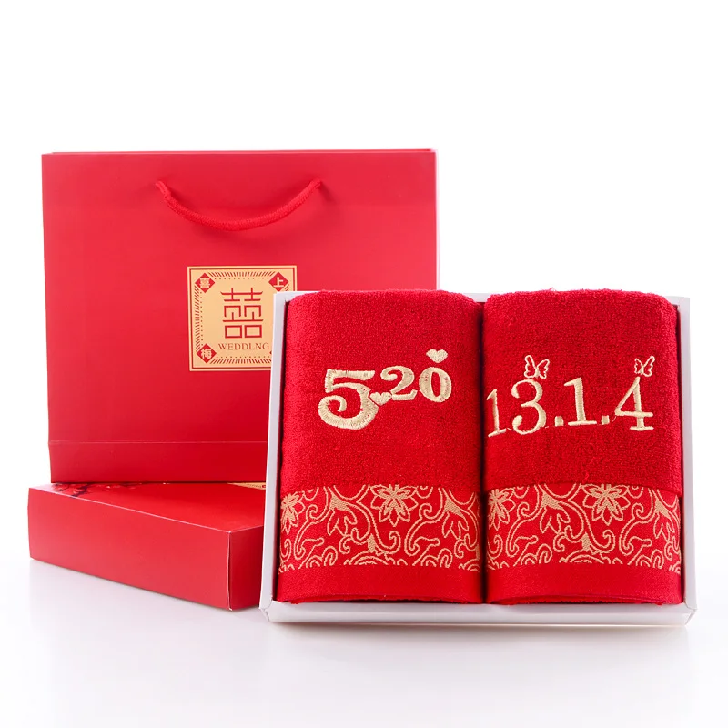 Marriage Festive Towel Pure Cotton a Pair of Bright Red Non-Fading Wedding Gift Return Dowry Souven