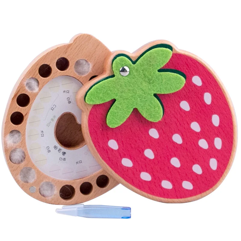 BEST QUALITY Strawberry Wooden Craft Baby Teeth Box Baby Lanugo Deciduous Teeth Storage Case Cool Souvenirs Coll