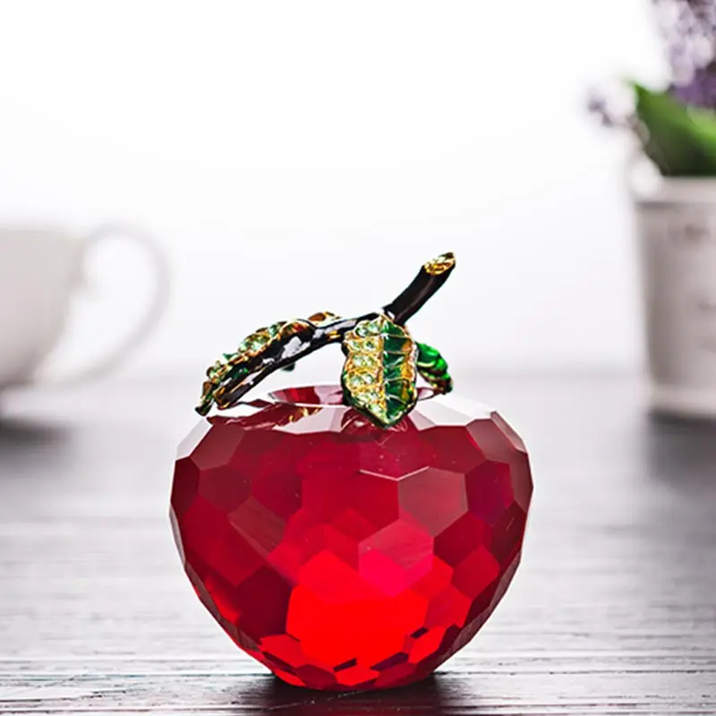 Best 60mm Red Glossy Crystal Apple Paperweight Glass Paperweight Fruit Crafts Gifts Art&Collection Souve