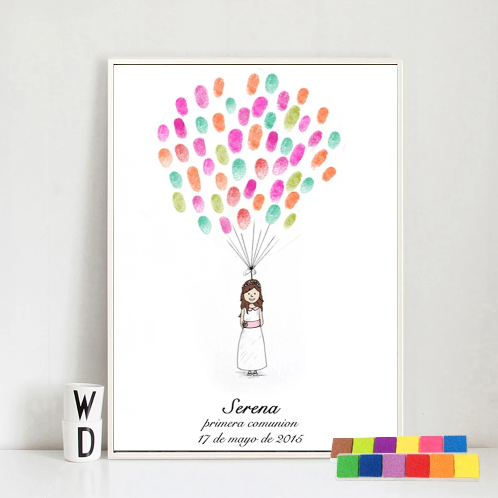Baby Girl Shower Souvenirs Fingerprint painting Guest Book Custom Print Little Princess Painting Bi